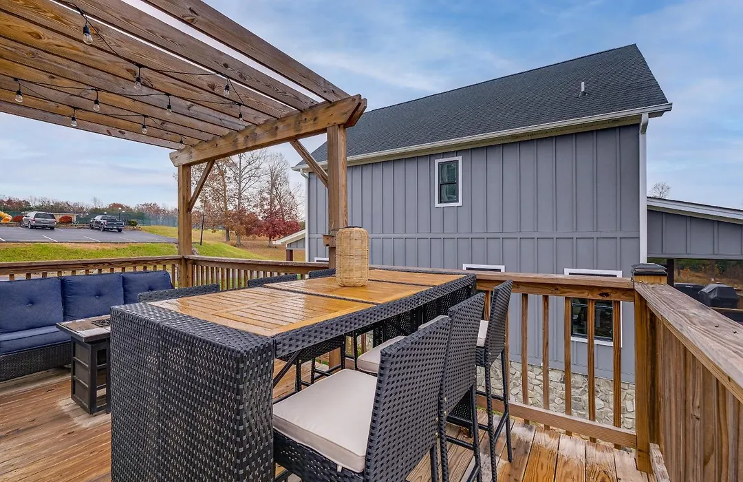The Huddleston property offers self-catering amenities, such as a fully furnished kitchen, and an outdoor dining area for guests' convenience. The kitchen also offers an oven and a dishwasher.